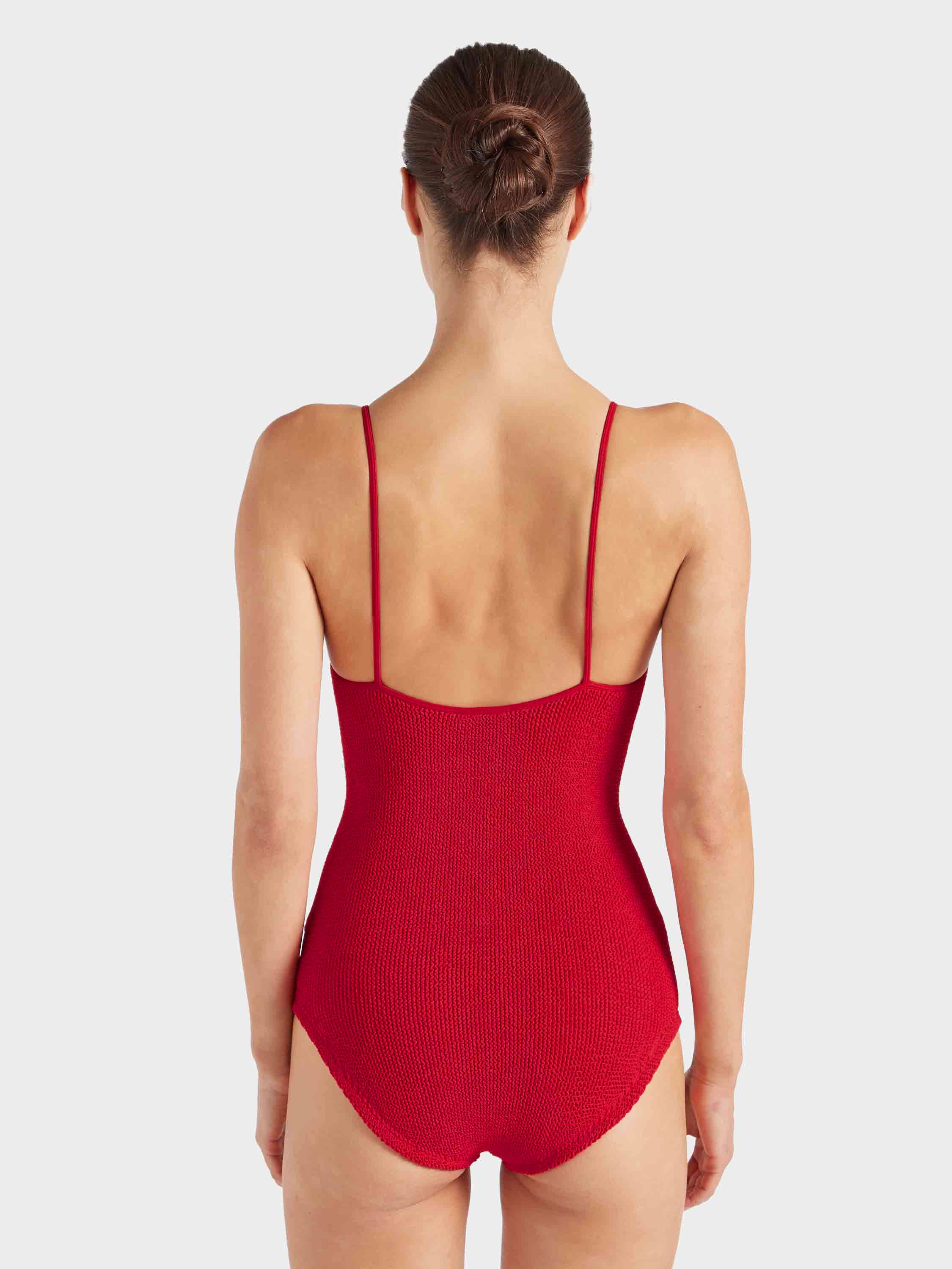 Our iconic Pamela, made with a little more crinkle. With more material in the body and a lower leg line with an adjustable fit, keep it classic with Pamela's delicate straps and scooped neckline.